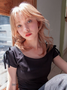 毛先を前上がりに切り顔まわりを短めに切ることにより顔周りにふんわりした印象を出しています。顔まわりをぱつっと切るのではなくてレイヤーを入れることによって巻いた時にくびれっぽい印象に作ることができています。